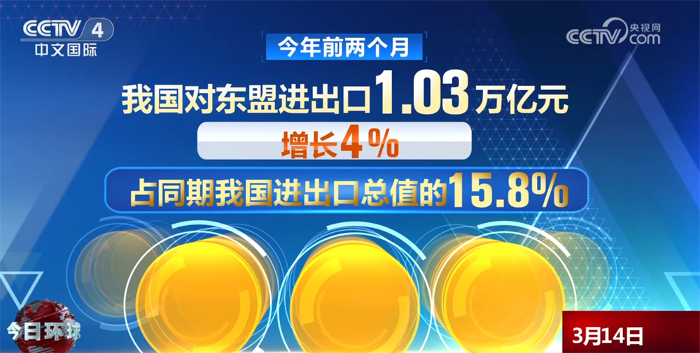 截至客岁,东盟已持续5年连结中国第一大商业伙伴地位。本年前两个月,东盟取中国货色商业进出口延续了这一趋向,继续连结中国第一大商业伙伴地位。据海关统计,本年前两个月,我国对东盟进出口1。03万亿元,增加4%,占同期我国进出口总值的15。8%。